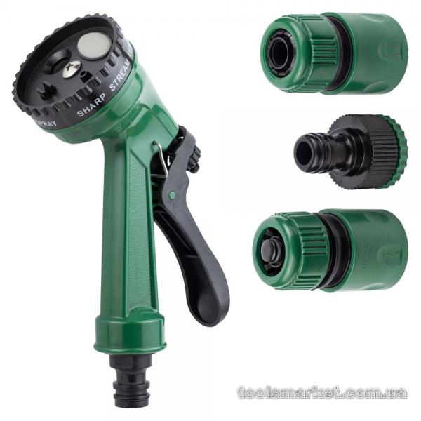Набір для поливу пістолет-розпилювач 4-х режимний 2 конектора + адаптер на шланг 3/4" GRAD (5012585)