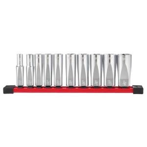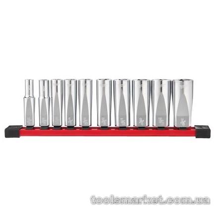 Набір головок торцевих дюймових 3/8'' MILWAUKEE, подовжених на планці (10шт)