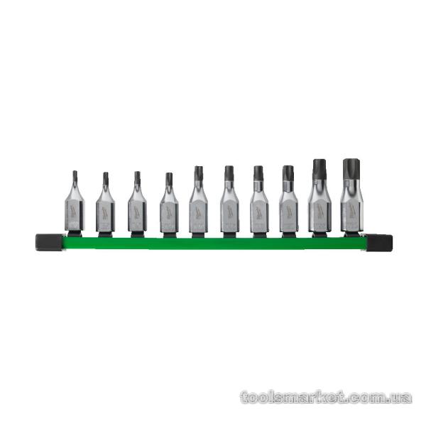 → Набір головок торцевих хромованих ⅜″ MILWAUKEE з бітою TORX, (Т20-Т60) на планці (10шт)