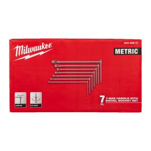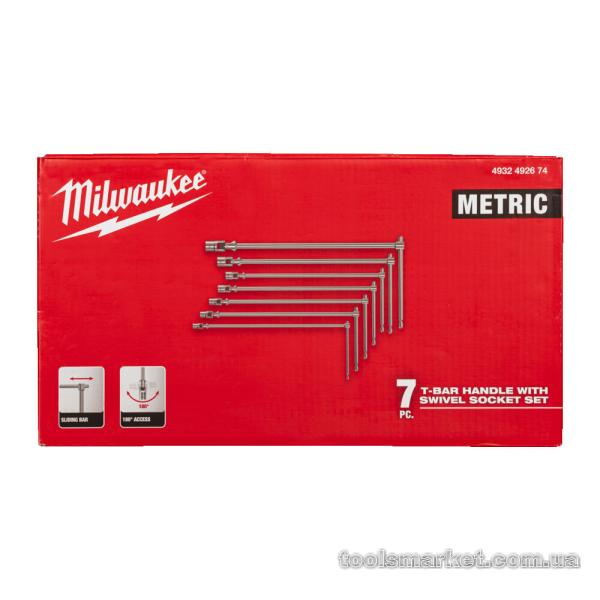 → Набір ключів хромованих з Т-образною ручкою та шарниром MILWAUKEE, (Hex 8 - Hex 19), (7шт)