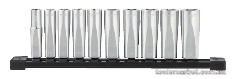 → Набір метричних головок 3/8", 10 шт. на рейці (10 19 мм) Milwaukee 4932492509