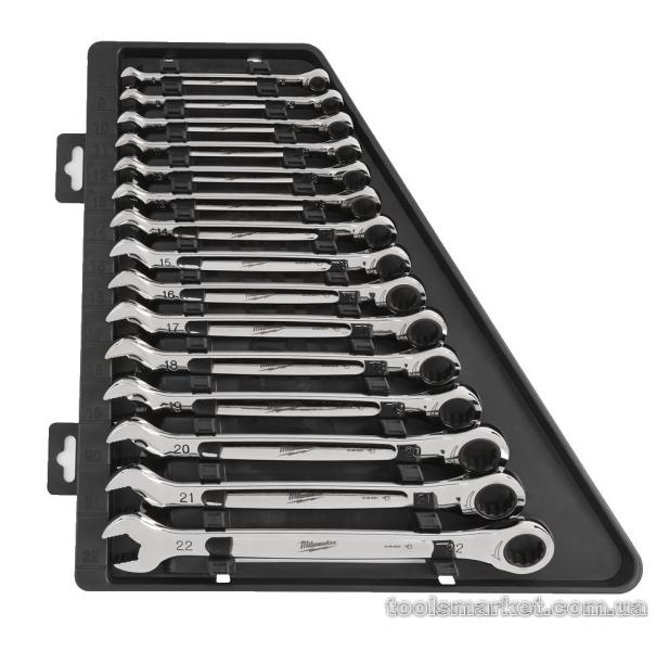 → Набір метричних ключів рожково-накидних MAX BITE MILWAUKEE з храповиком, (15шт), (8 - 22мм)