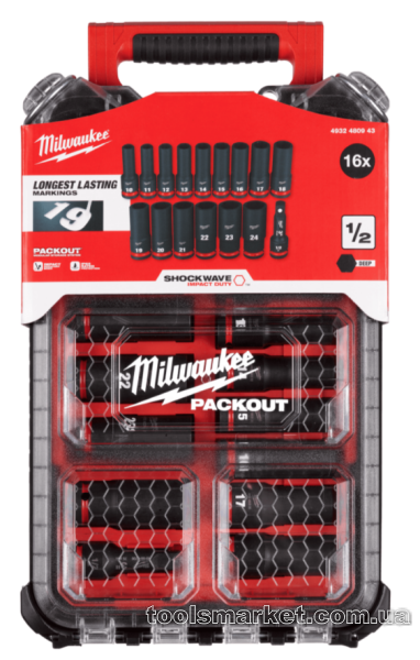 Набір ударних насадок 1/2 SHOCKWAVE 16 предметів з органайзером PACKOUT