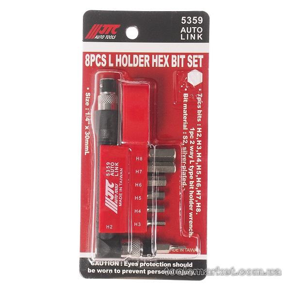 Набор Бит-вставок 1/4" DR H2, H3, H4, H5, H6, H7, H8 и Г-образным держателем 8 пр. JTC