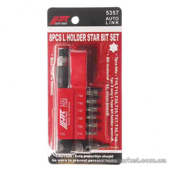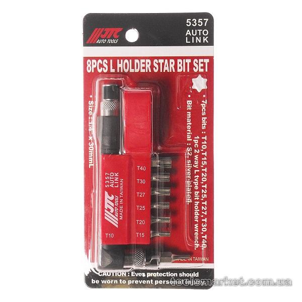 Набор Бит-вставок 1/4" DR Т10, Т15, Т20, Т25, Т27, Т30, Т40 и Г-образным держателем 8 пр. JTC