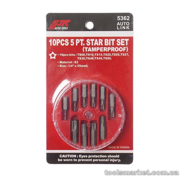 Набор бит 1/4" TORX TS08-TS50 с отверстием 10ед.