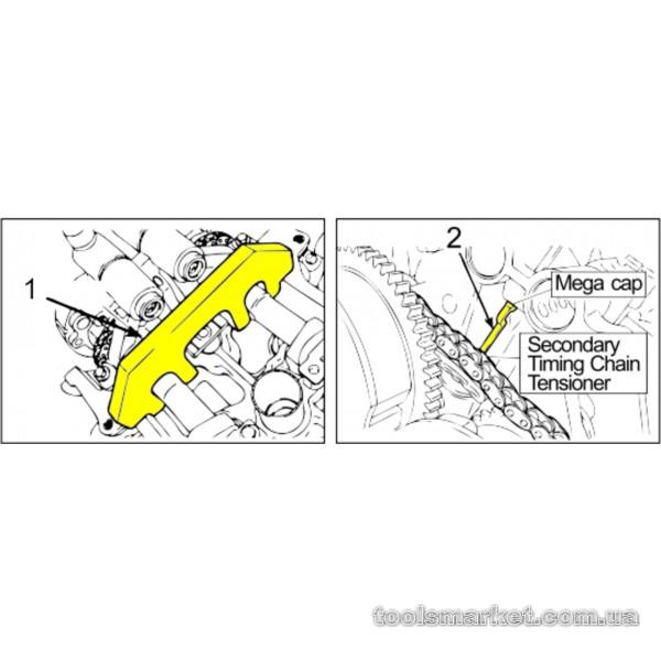 - Инструмент предназначен для фиксации рапредвалов в ВМТ и фиксации натяжителя цепи.