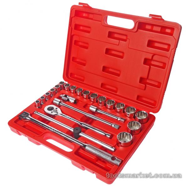 - Головка 1/2": 10, 11, 12, 13, 14, 15, 16, 17, 18, 19, 21, 22, 23, 24, 27, 29, 30, 32 мм. - 18 шт.