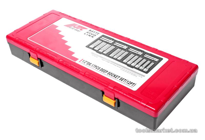 - Артикулы JTC-47710-32: головки глубокие 12-гранные, 1/2": 10 мм.; 11 мм.; 12 мм.; 13 мм.; 14 мм.; 15 мм.; 16 мм.; 17 мм.; 18 мм.; 19 мм.; 21 мм.; 22 мм.; 23 мм.; 24 мм.; 27 мм.; 30 мм.; 32 мм. - 17 шт.