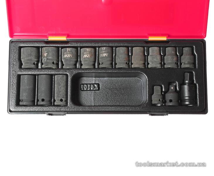 - Артикулы JTC-445417-1: ударные головки средней глубины шестигранные 1/2": 17 мм., 19 мм., 21 мм. - 3 шт.