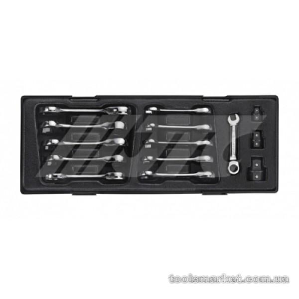 Набор ключей рожково-накидных 8-19мм., укороченных с трещоткой 14ед.