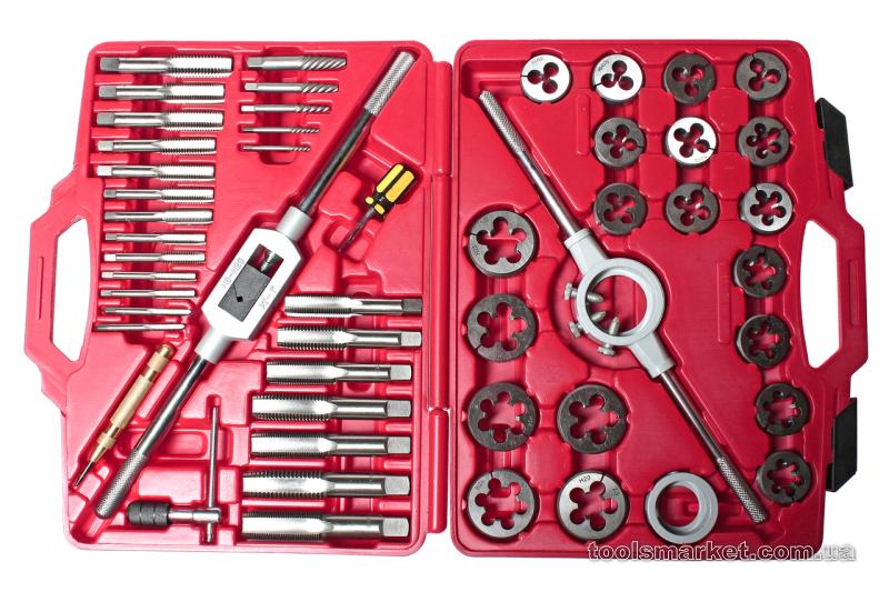 - Плашки, наружный диаметр 1-1/2": М6х0.75, М6х1.0, М8х1.0, M8х1.25, М10х1.25, M10х1.5, M12х1.25, M12х1.5, M14х1.5, M14х2.0, M16х1.5, M16х3.0, M18х1.5, M18х2.5 - 14 шт.