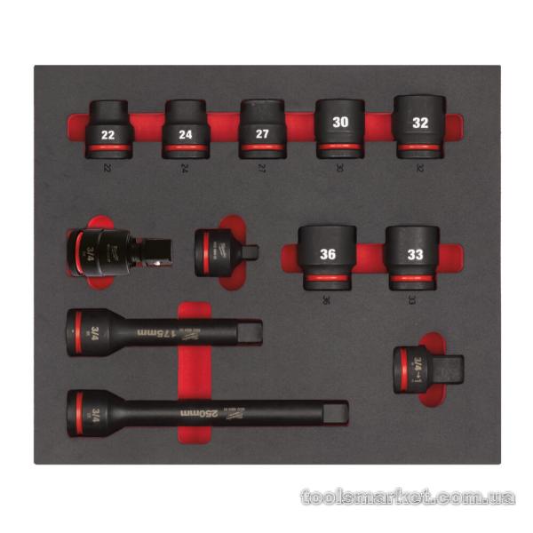 Набор торцевых головок 3/4" ударных длинных 12 ед MILWAUKEE