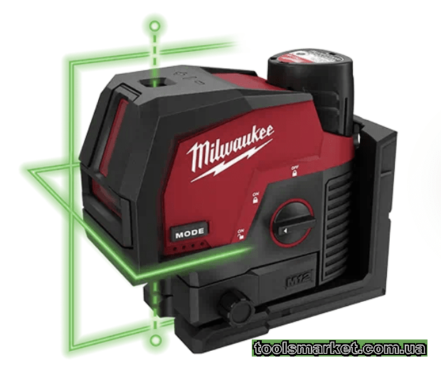 Нівелір лазерний лінійно-точковий акумуляторний MILWAUKEE M12 CLLP-301C (зелений промінь)