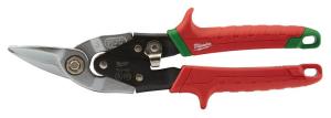 Ручний інструмент Ножиці з металу Правий різ NEW, шт Прорізи для великого та вказівного пальців для більшого комфорту під час роботи та меншої втоми. Ергономічні та міцні гумові рукоятки для більшого комфорту та тривалого терміну служби. Підходять для прямих та фігурних різів. Ідеально підходять для невеликих радіусів різу та коротких надрізів. Зміщені губки: для тривалого або фігурного різання. Нахил губок 45 ° тримає користувача осторонь матеріалу. Подовжені губки: дозволяють різати швидше та акуратніше при тривалих прямих різах. Зубчасті ріжучі кромки запобігають прослизу при різанні. Менше втома руки при різанні товстих матеріалів. Дизайн із комбінованою дією важеля. Торсійна пружина відкриває губки автоматично під час різання для більш швидкого різання та меншої втоми. Покриття хромом захищає від корозії для більшого терміну служби. Додаткове загартування до 65 HRC. Виготовлені з легованої сталі для кращої зносостійкості. Механізм блокування однією рукою. Тонкий, обтічний дизайн для запобігання зачепленню в матеріалі. Три напрямки різання маркуються на голові, ручках та у колірній схемі ручок. Характеристики: Загальна довжина (мм) 260 Довжина краю (мм) 31 Макс. ріжуча здатність алюмінію/сталі (мм) 1.0 Макс. ріжуча здатність у нержавіючій сталі (мм) 0.6 Напрямок різання Правий різ (зелені) Вага (г) 430 Комплект поставки: Ножиці для різання металу Milwaukee правий різ - 1 шт. Постачається в блістері