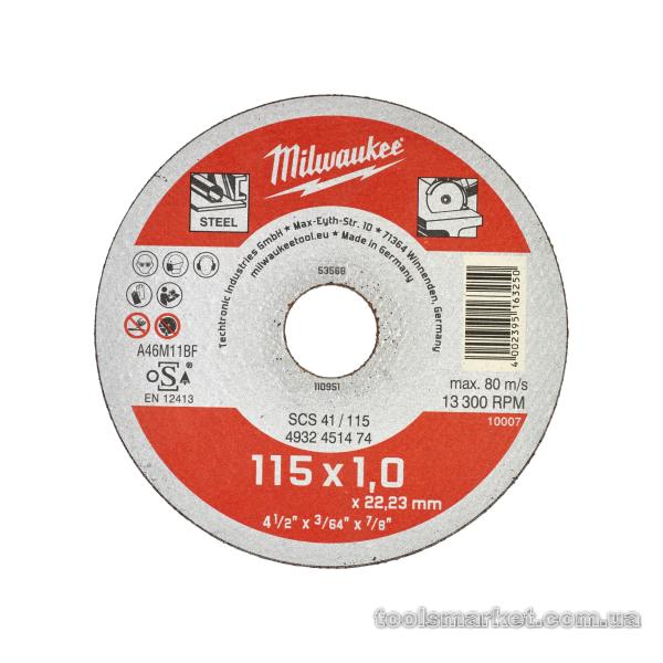 Диск відрізний по металу MILWAUKEE, SCS 41/125х1, діаметр 125 мм