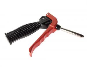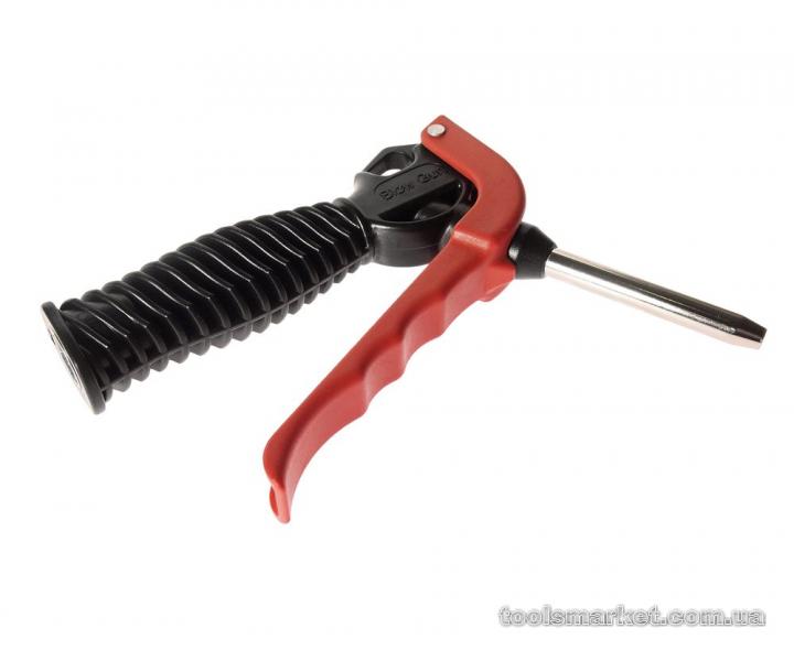 - С эргономичной выжимной рукояткой для экономии усилия и металлическим переходником в месте подключения воздушного штуцера.