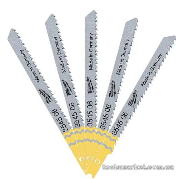 Полотна для лобзика T101B MILWAUKEE, 75мм/ крок зубу 2,5мм, (5шт), (деревина, чистий різ)