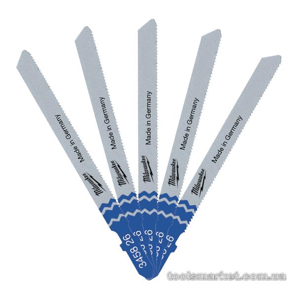Полотна для лобзика T318A MILWAUKEE, 105мм/ крок зуба 1,0мм, (5шт), (універсальні)