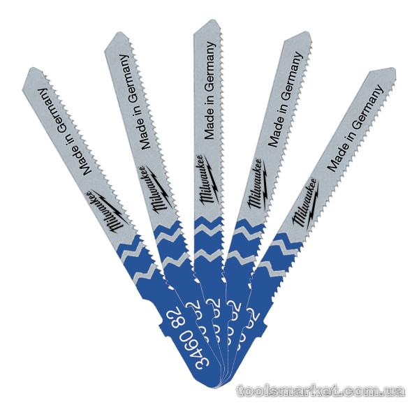 Полотна для лобзика T101BR MILWAUKEE, 75 мм/ крок зуба 2,5 мм, (5шт), (зворотній різ)