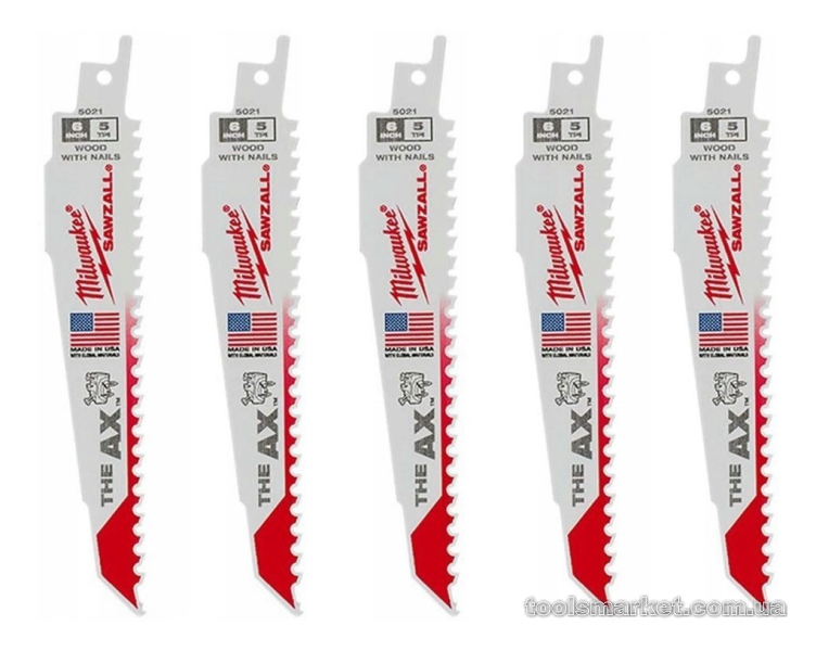 Полотно для шаб. пили AX FANG TIP MILWAUKEE, 150мм/ крок зуба 5,0мм, (5шт), (деревина з цвяхами)