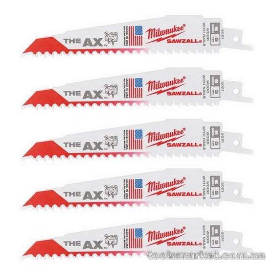 Полотно для шаб. пили AX FANG TIP MILWAUKEE, 300мм/ крок зуба 5,0мм, (5шт), (деревина з цвяхами)