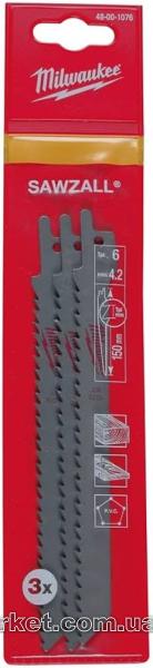 Полотно для шабельної пили MILWAUKEE, 150мм/ крок зуба 4,2мм, (3шт), (деревина, пластик)