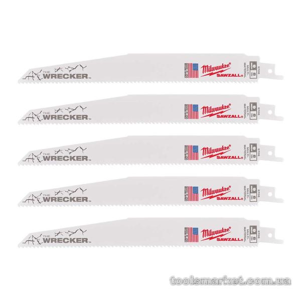 Полотно для шабельної пили WRECKER MILWAUKEE, 150мм/ крок зуба 3,6/2,3мм, (5шт), (метал, деревина)