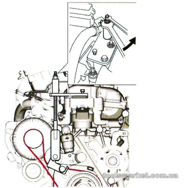 - Используется для фиксации натяжного шкива при замене приводного ремня.
