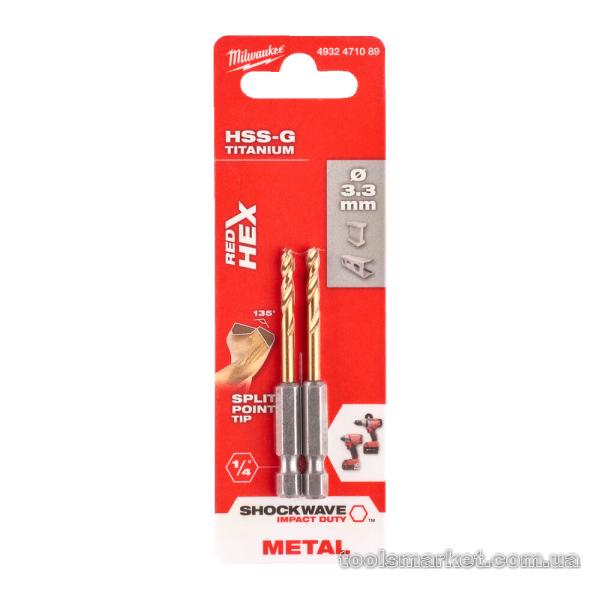 RedHEX SHOCKWAVE™ HSS-TiN MILWAUKEE, діаметр 3,3х67х24мм, (2шт)