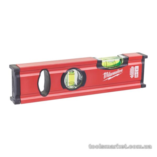 Рівень SLIM 20см магнітний 2 тверді, акрилові пухирцеві колби. Удароміцні та стійкі до УФ випромінювання. Точно фрезеровані вимірювальні поверхні до 120 см забезпечують максимальну точність. Амортизуючі гумові торцеві заглушки. Міцний підвісний отвір для зберігання. VPA сертифікат на точність. Похибка 0.029 ° (0.0005 "/дюйм, 0.5 мм / м) в робочому положенні