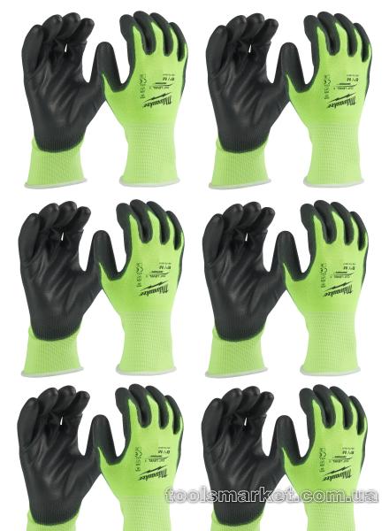 Рукавички Hi-Vis Cut розмір L/9 - (Багатоштучна упаковка - 12 пар) ОСОБЛИВОСТІ Флуоресцентний матеріал забезпечує високу видимість. Легкі та тонкі рукавички з покриттям поліуретану на долоні. Розроблений для забезпечення підвищеної тактильності та комфорту протягом усього дня, ідеально підходить для роботи з різними матеріалами. SMARTSWIPE™ на долонях та кінчиках пальців - дозволяють користуватися пристроями із сенсорними екранами не знімаючи рукавичок Відповідають стандартам EN ISO 21420, EN388:2016 (3121A), UKCA, ТР ТС 019/2011.