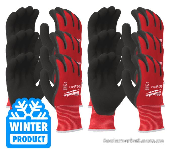 Рукавиці MILWAUKEE з опором порізам 1, зимові, розмір 10/XL, (12шт.)