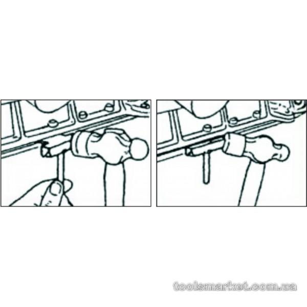 - Способ применения: широкий, конусовидный, закругленный, острый край съемника вставляется между металлическими поверхностями для отсоединения поддона картера от блока двигателя.