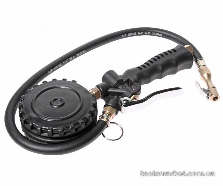 - Манометр с рукоятью и ручным клапаном. Выполняет три функции: проверка давления, сбрасывает давление до нужного значения, накачивает до нужного значения.