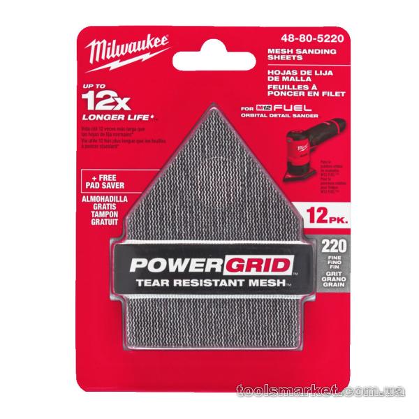 Сітка шліфувальна HL MILWAUKEE, 67х92мм, зерно 220, (12шт+подкладка) (для M12 FDSS)
