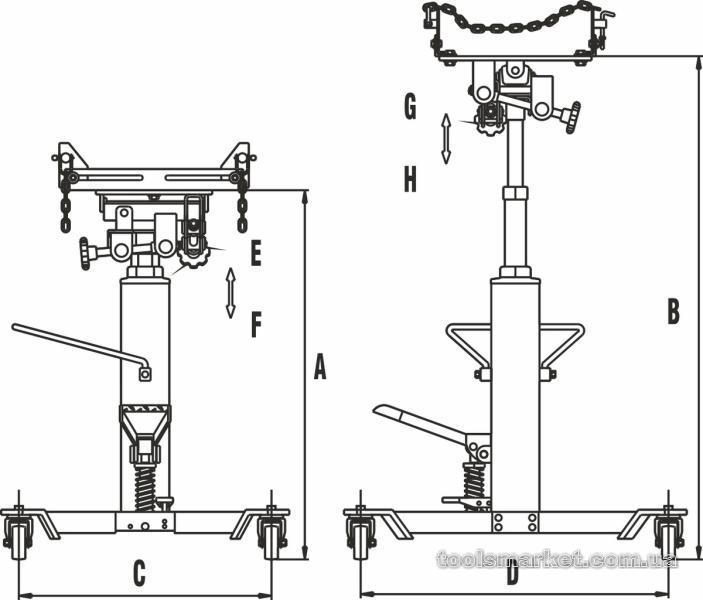 Домкрат гидравлический (бутылочный, с пневмоприводом) 50т