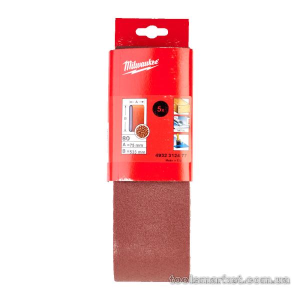 Стрічка шліфувальна абразивна MILWAUKEE, 75х533, зерно 80 (5шт)