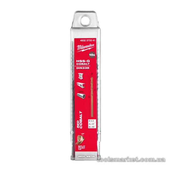 Свердло по металу HSS-Co MILWAUKEE, DIN338, Ø4,5х80х47мм, (10шт)