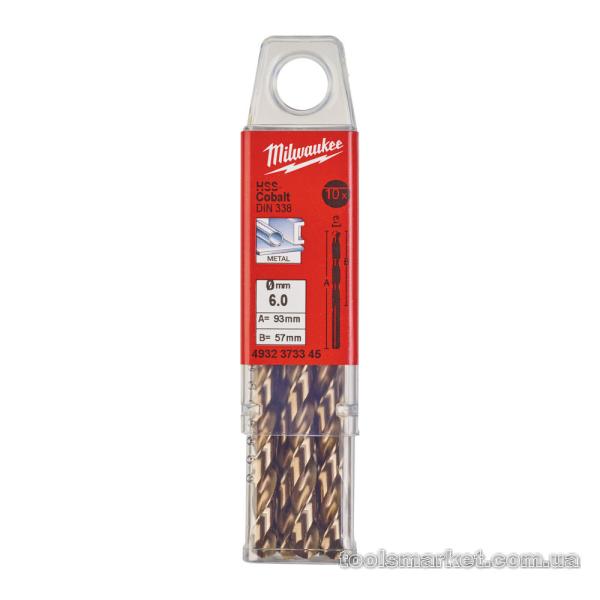 Свердло по металу HSS-Co MILWAUKEE, DIN338, Ø6,0х93х57мм, (10шт)