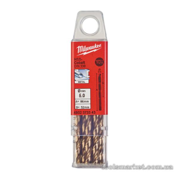 Свердло по металу HSS-Co MILWAUKEE, DIN338, Ø5,0х86х52мм, (10шт)