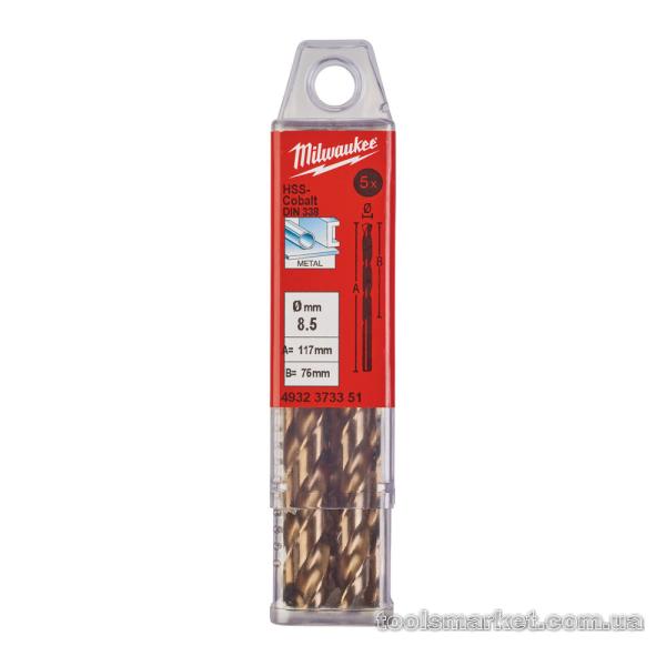 Свердло по металу HSS-Co MILWAUKEE, DIN338, діаметр 8,5х117х75мм, (5шт)