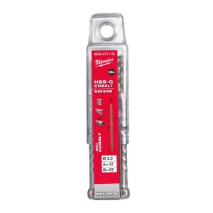 Свердло по металу HSS-Co MILWAUKEE DIN338, діаметр 2,5мм, (10шт)