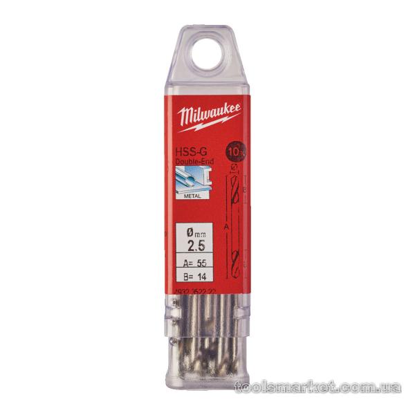 Свердло по металу HSS-G MILWAUKEE, DIN 1412 C, Ø2,5х43х10мм, двостороннє, (10шт)