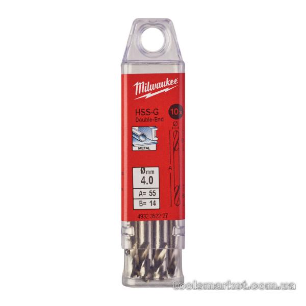 Свердло по металу HSS-G MILWAUKEE, DIN 1412 C, Ø4,0х55х14мм, двостороннє, (10шт)