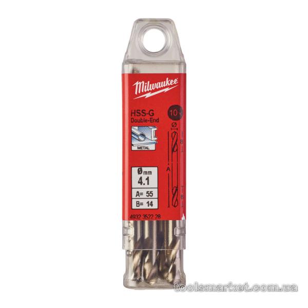 Свердло по металу HSS-G MILWAUKEE, DIN 1412 C, Ø4,1х55х14мм, двостороннє, (10шт)