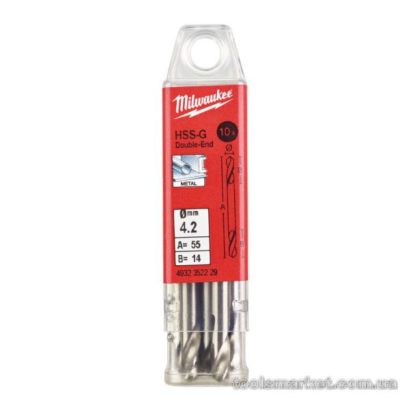 Свердло по металу HSS-G MILWAUKEE, DIN 1412 C, Ø4,2х55х14мм, двостороннє, (10шт)