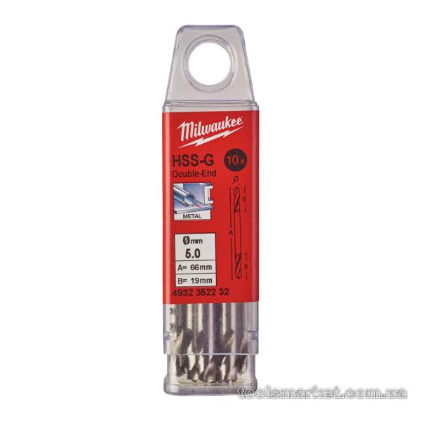 Свердло по металу HSS-G MILWAUKEE, DIN 1412 C, Ø5,0х62х18мм, двостороннє, (10шт)