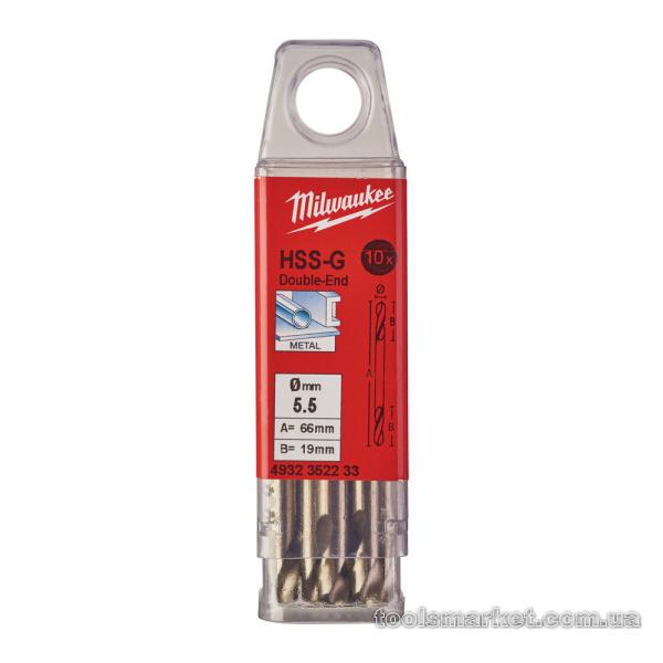 Свердло по металу HSS-G MILWAUKEE, DIN 1412 C, Ø5,5х66х19мм, двостороннє, (10шт)