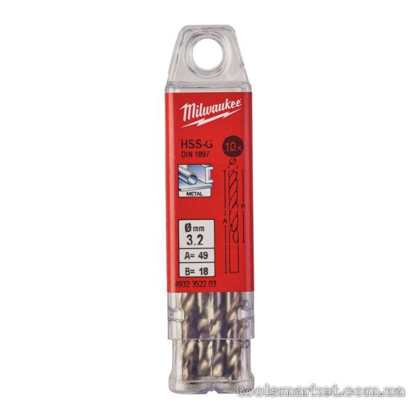 Свердло по металу HSS-G MILWAUKEE DIN1897, діаметр3,2x49мм, (10шт)